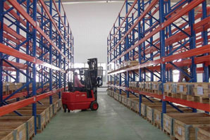 倉庫使用重型倉庫貨架存貨,當無法人工取貨時,需要叉車的配套使用,那么如何為倉庫貨架選擇合適的叉車呢?